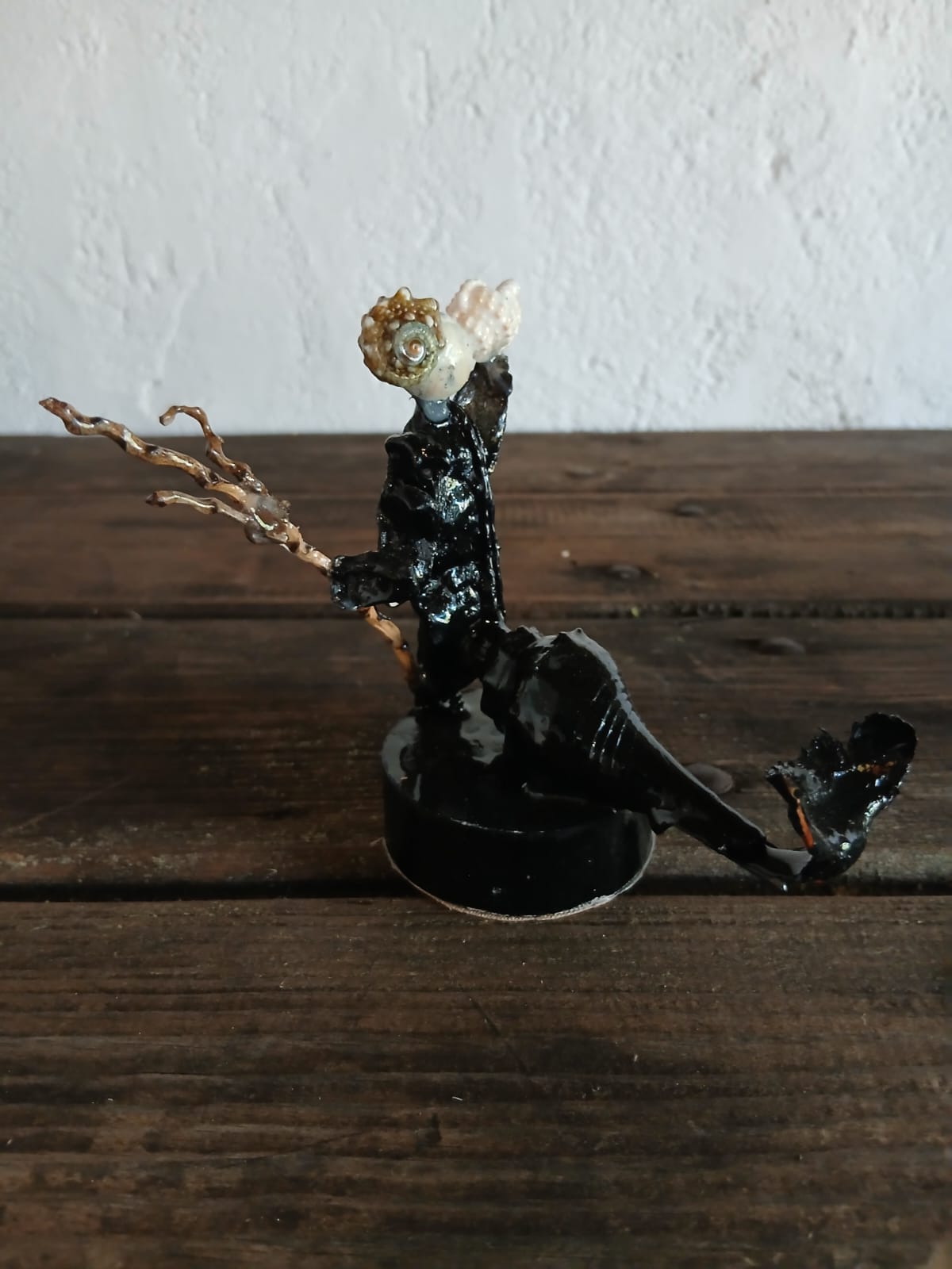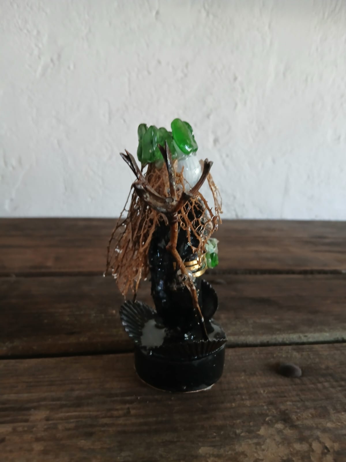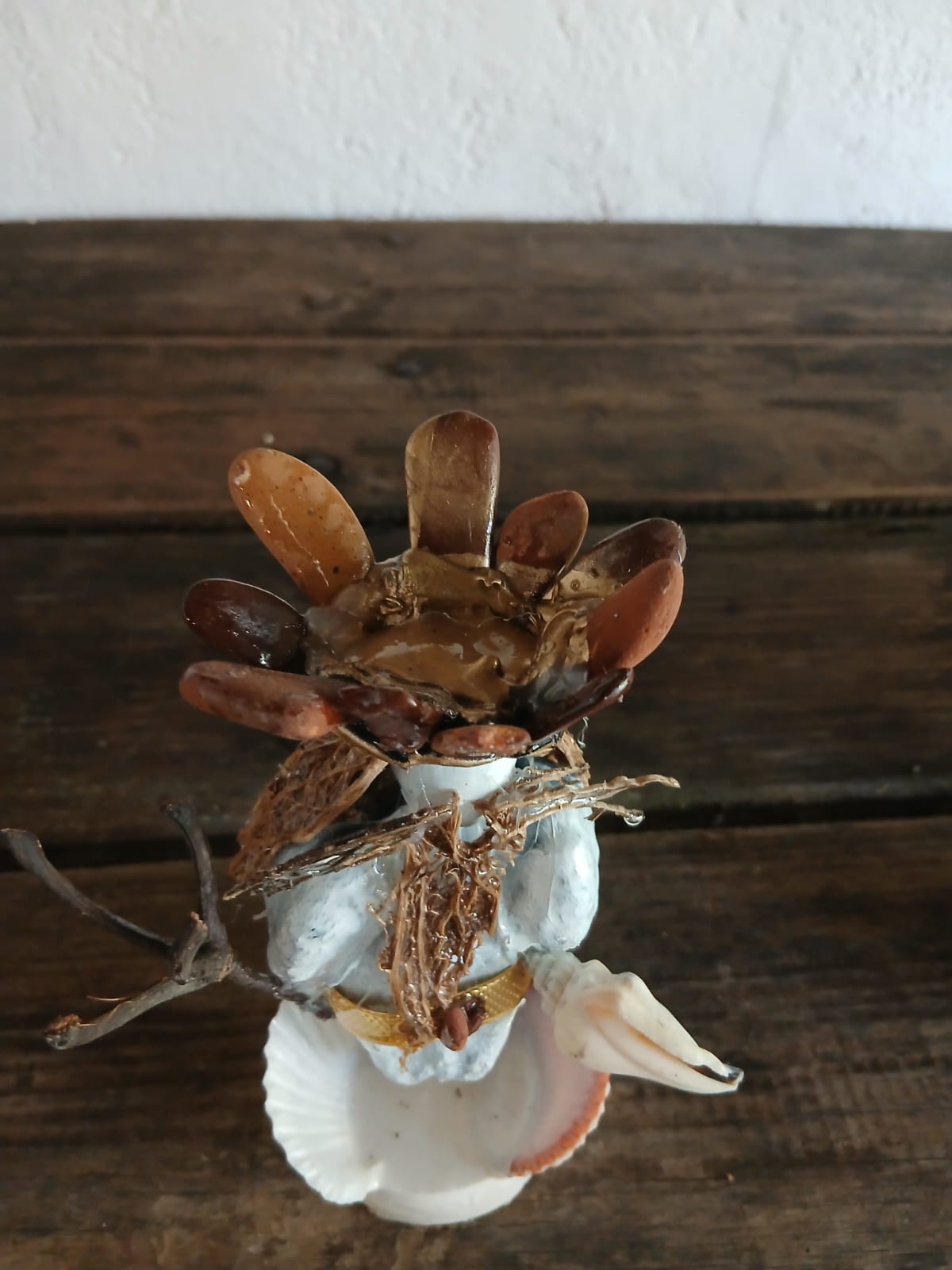 Hecho totalmente con material vegetal, corteza, ramas torcidas, semillas, vainas, cactus etc.